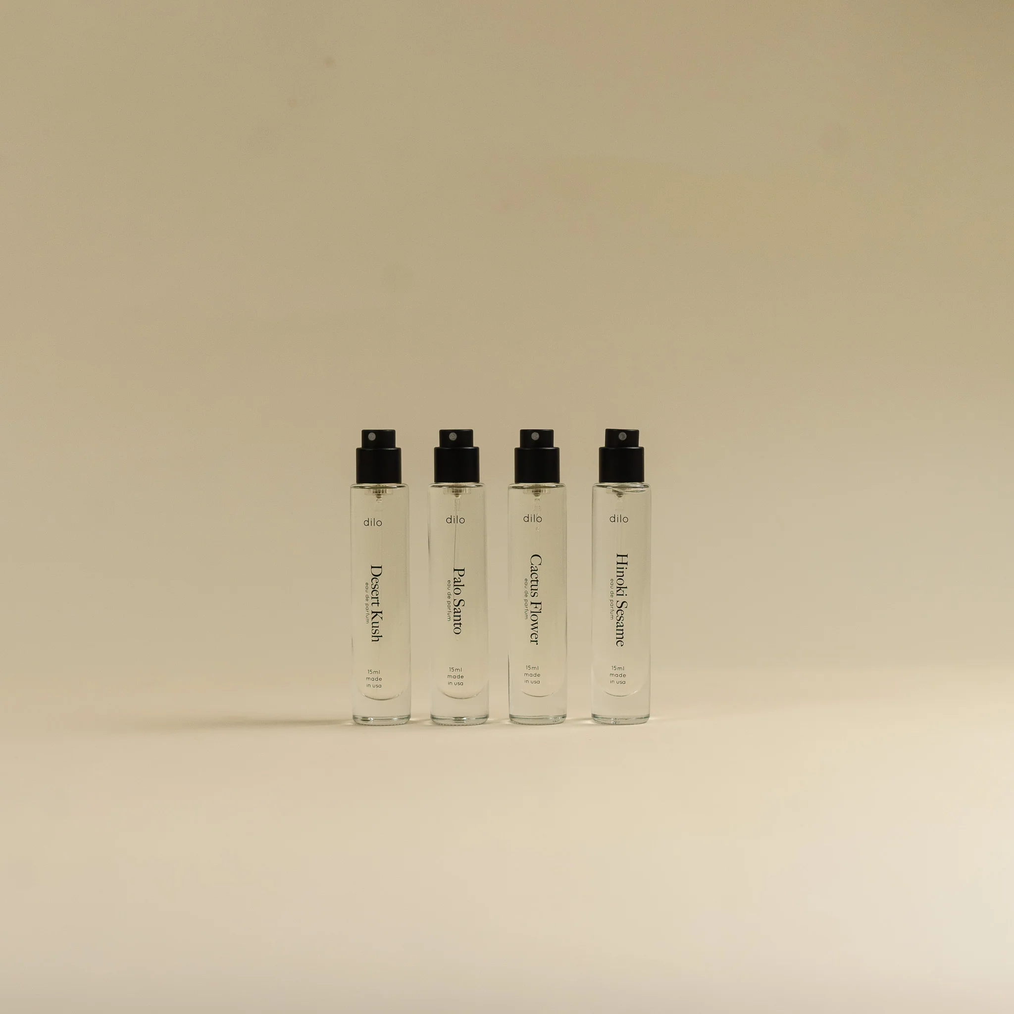 Offered in Palo Santo, Desert Kush, Hinoki Sesame and Cactus Flower - all developed and formulated especially for personal fragrance application - complimentary to the candle home fragrance, but with much more depth.